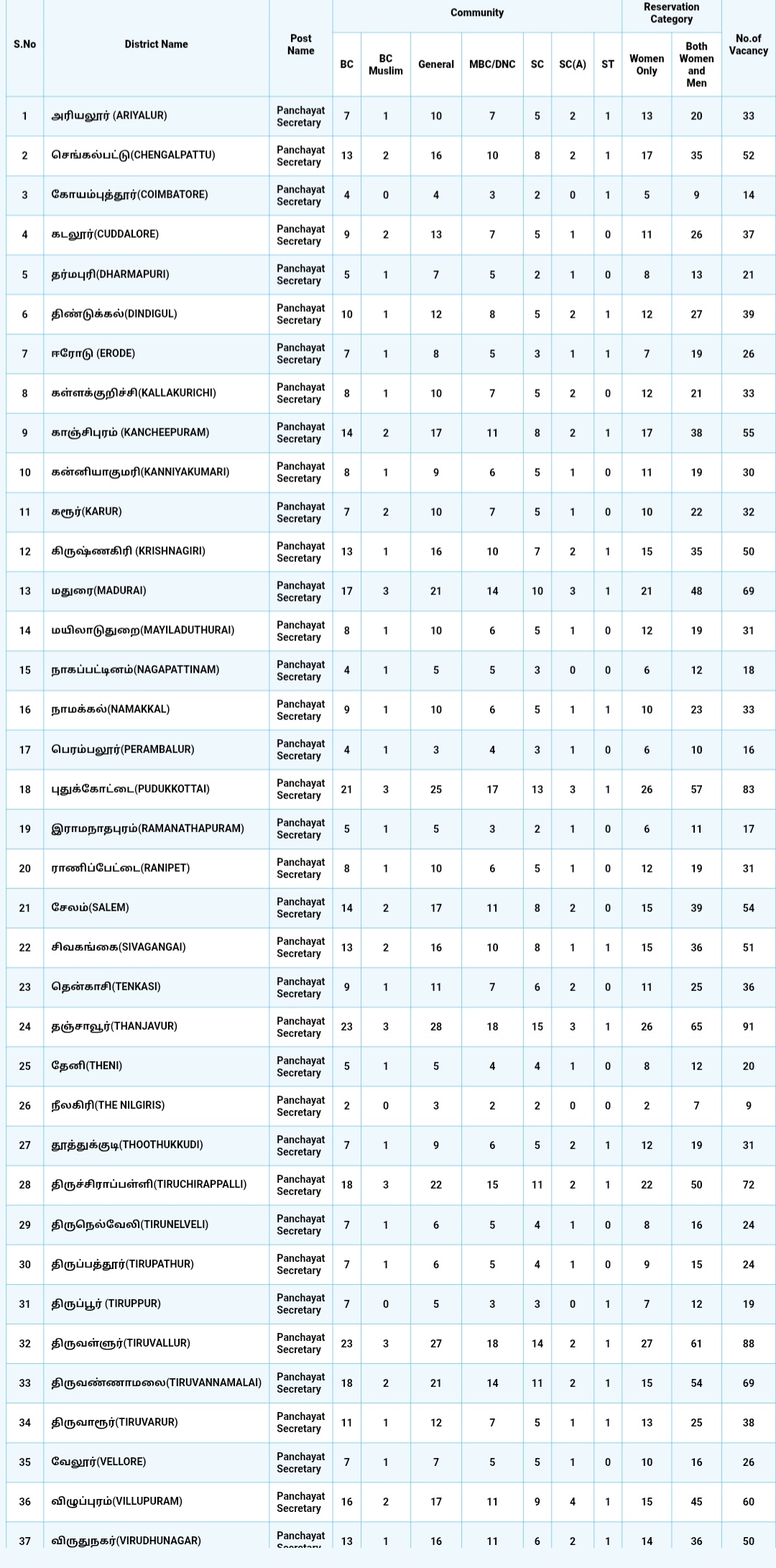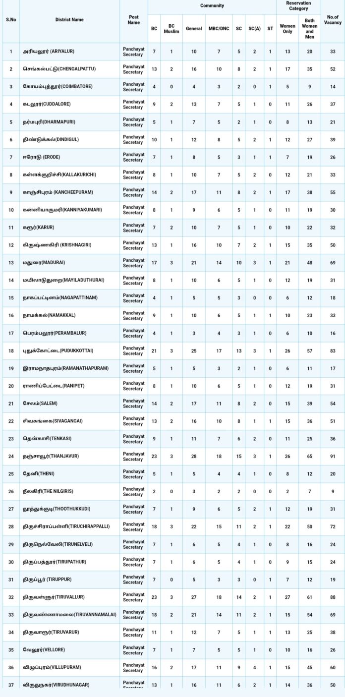 ஊராட்சி செயலாளர்கள் காலி பணியிடங்கள் சென்னை நீங்கலாக தமிழ்நாடு முழுவதும் காலியாக உள்ளது.