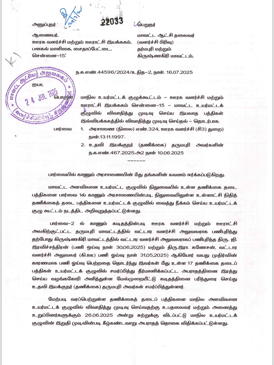 அதன் மீது மேல்முறையீடு செய்யப்பட்டதில் தற்போது ஊரக வளர்ச்சித்துறை ஆணையரால் ஒரு லட்சம் அபராதம் என்று குறைத்து ஆணையிடப்பட்டுள்ளது.